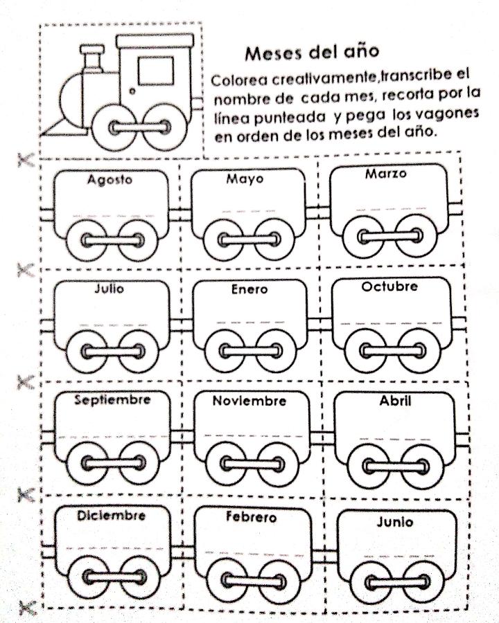 - Realiza la ficha de los meses del año formando el trencito y ubicándolos en el orden correspondiente.