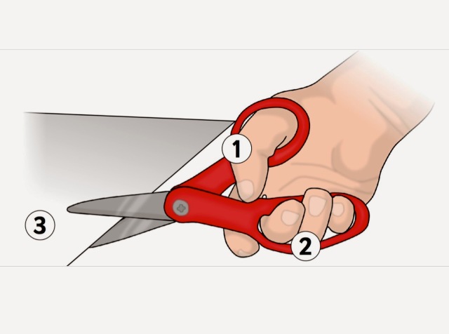 Nota: Debe haber un acompañamiento permanente durante todo el ejercicio. Recordar orientar al niño o niña en el correcto agarre de la tijera ( como se indica en la imagen de la izquierda) y que la utilice adecuadamente evitando accidentes.