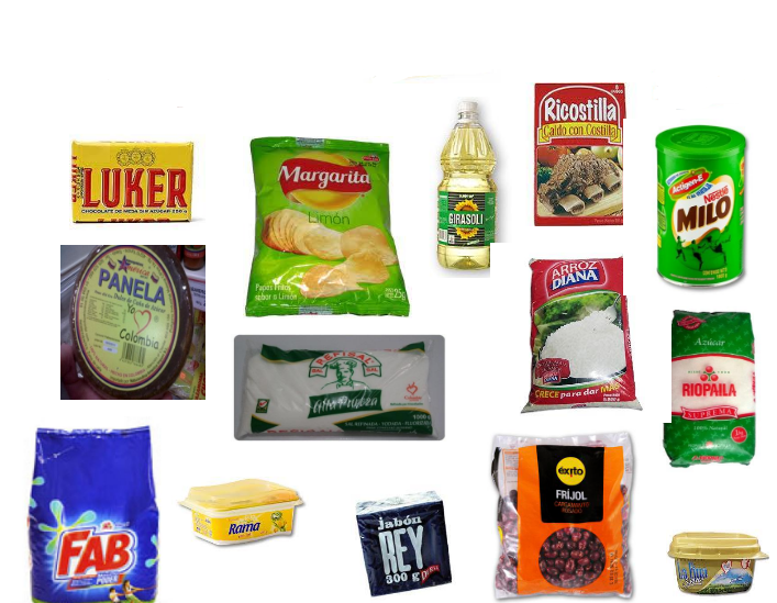 - Recoger empaques de productos del mercado, portadores de texto, los pegas en hojas de block y escribes el nombre del producto debajo o al frente de la imagen.