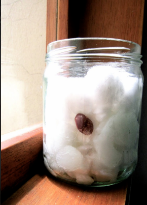 - Coloca 3 frijoles en diferentes partes del frasco, evita que queden pegados o en el fondo.